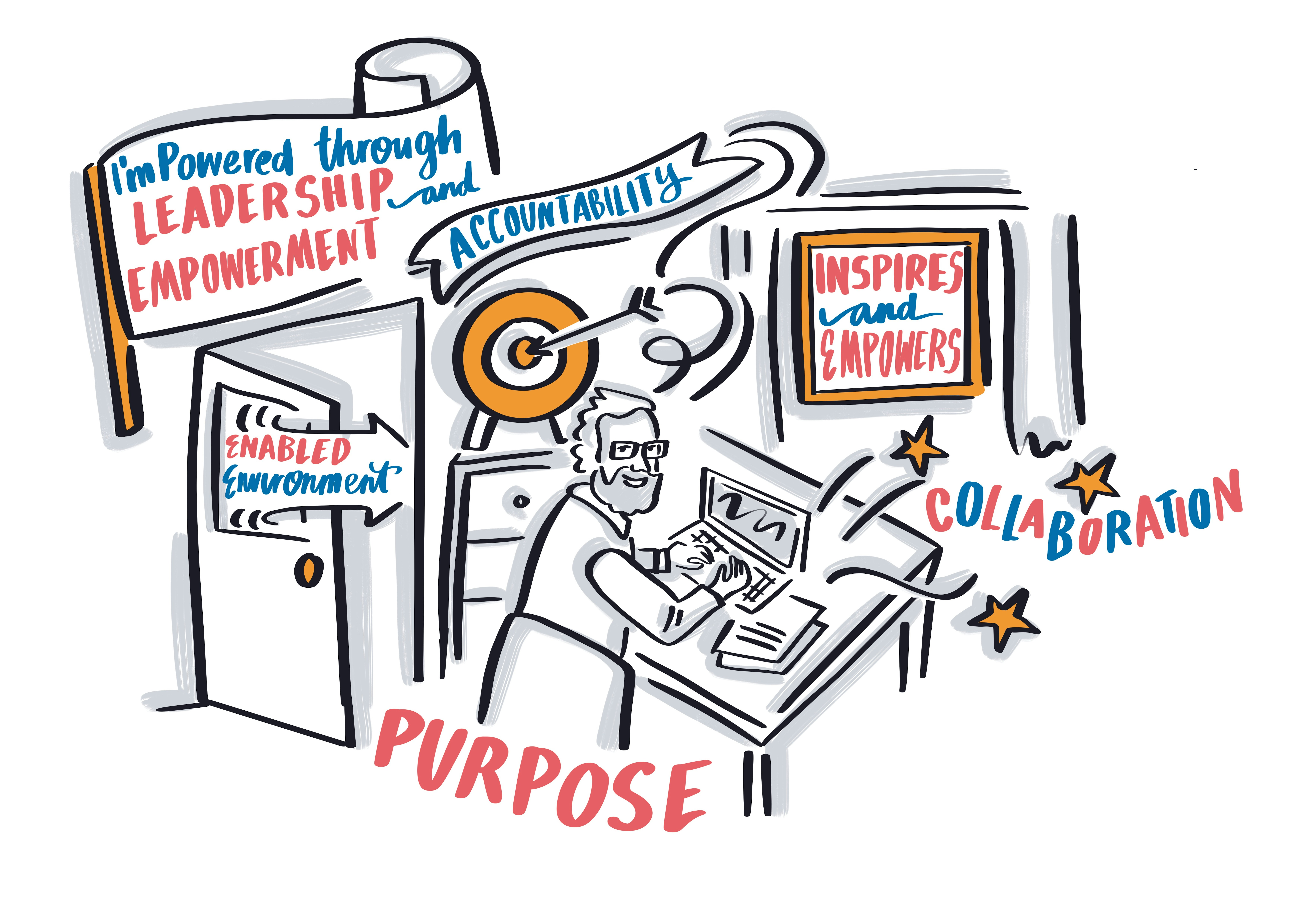 Having Annie scribe at the event was one of the best decisions we made! It brought the day to life and clearly summarised what we were talking about in a visual and fun way – it also became the cornerstone of our communications back to our teams – they loved it too as it was a different way of cascading information