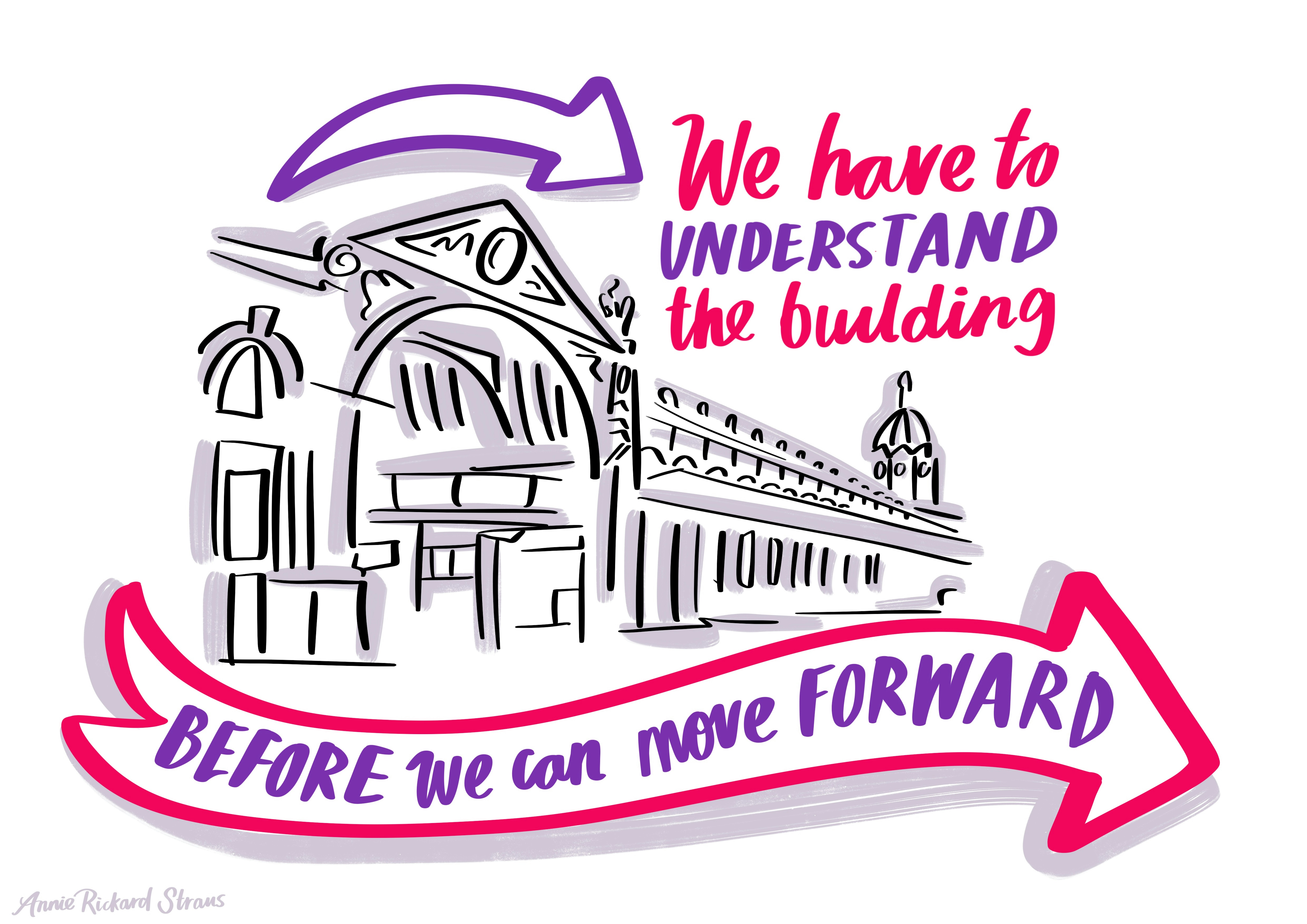 We have had illustrators before at events but what really made Annie stand out was the way she was able to seamlessly fit in and support us and our event. She brought a sense of calm, with a gentle yet firm inquisitive nature, bringing humour and highlighting trends and themes through her summaries which we hadn't even realised we were making. Highly recommend!