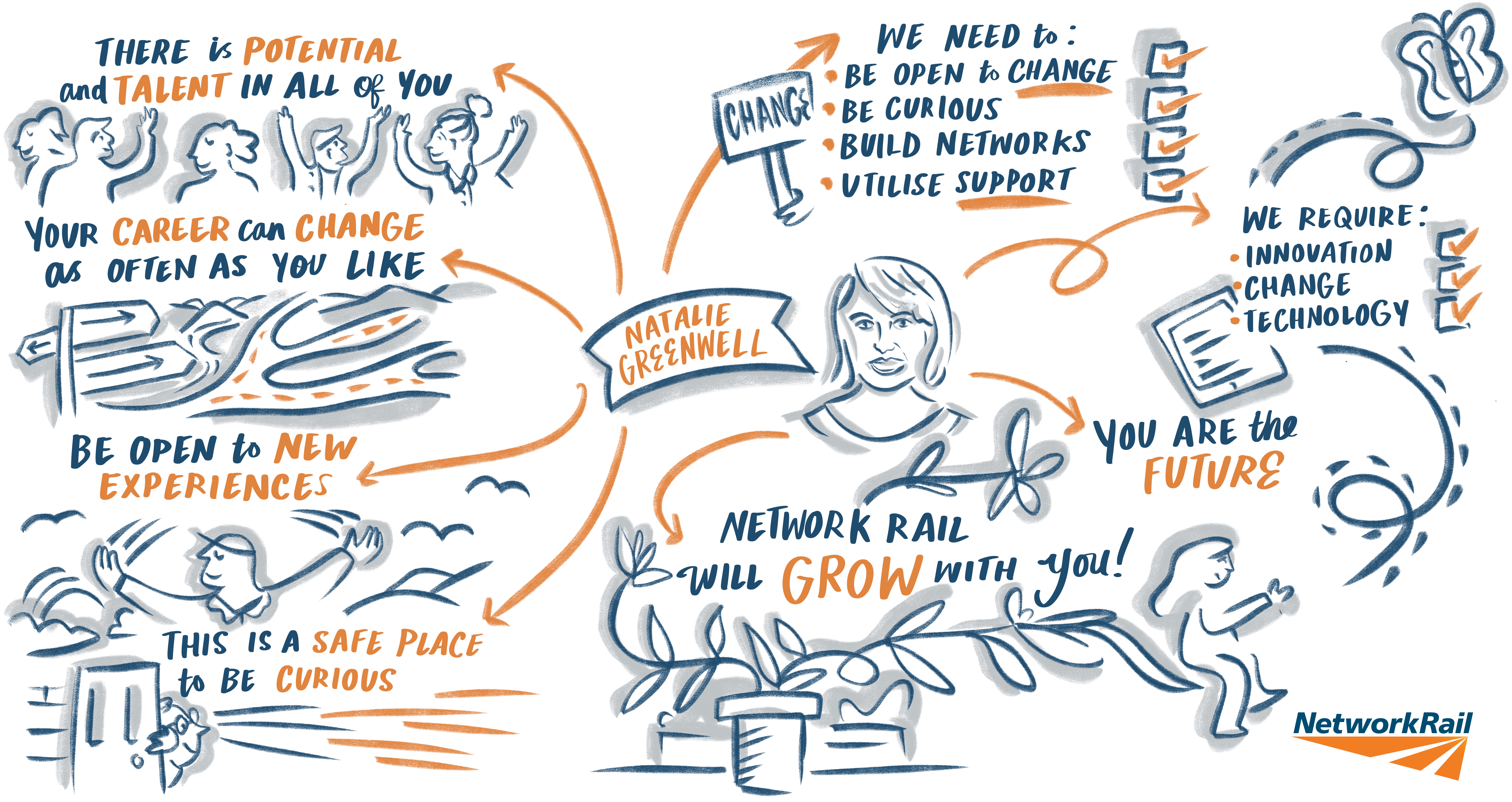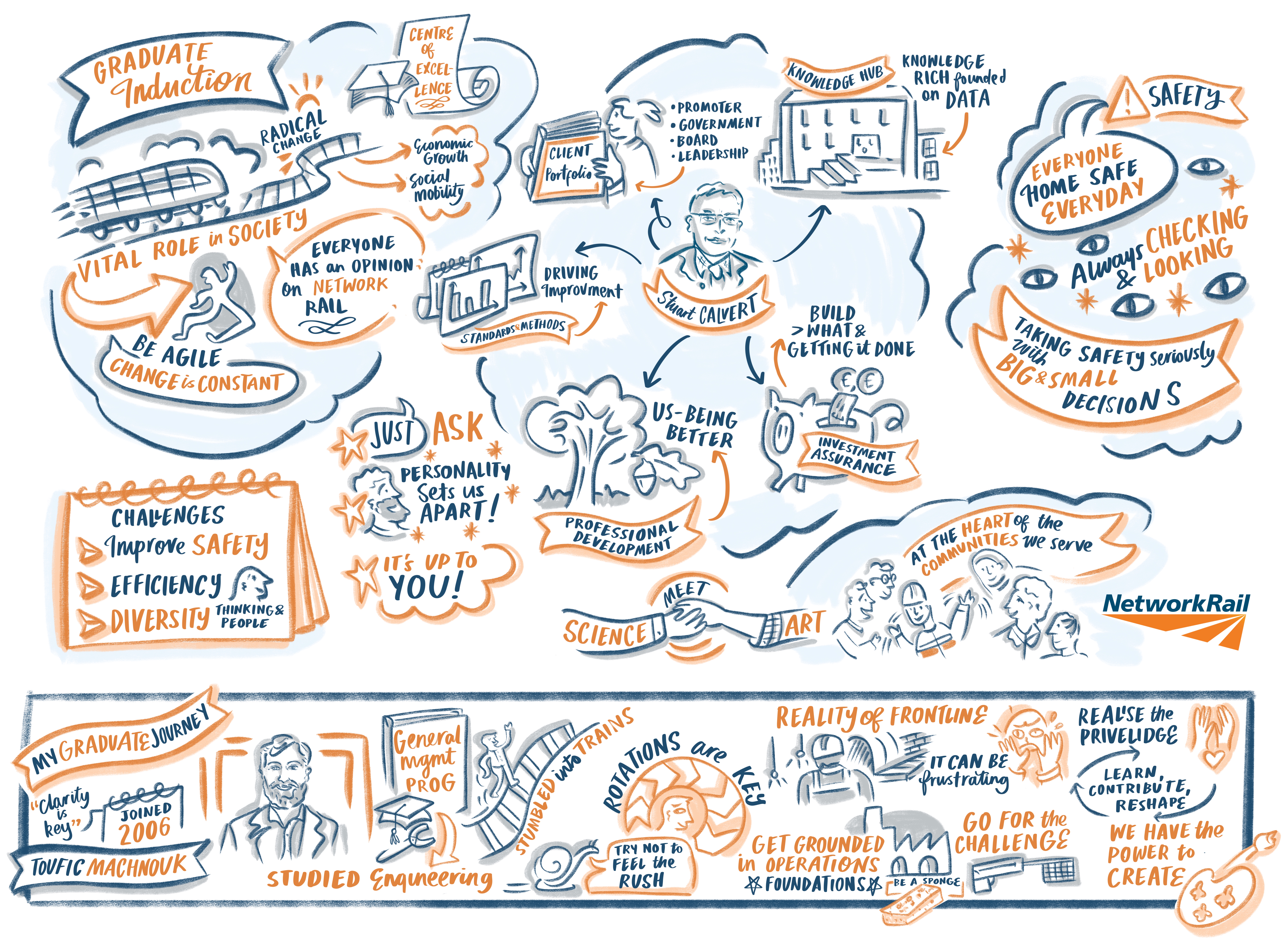 Live illustrations for a Network Rail training programme.